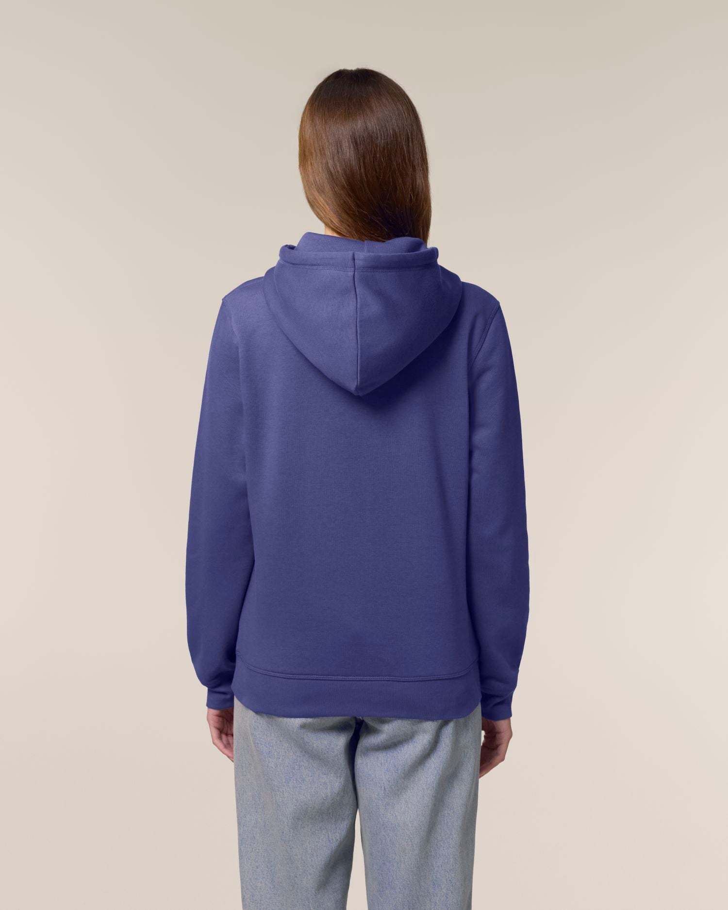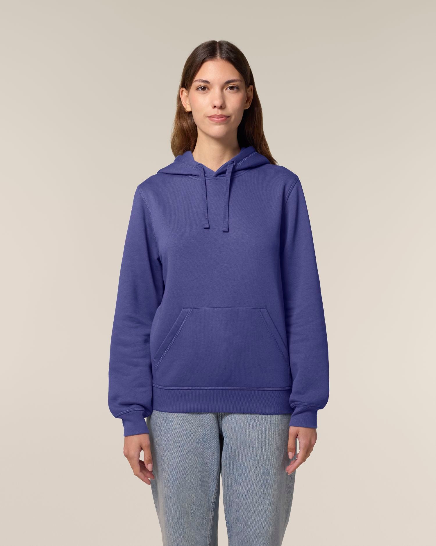 Bolsillo canguro con pespunte plano.